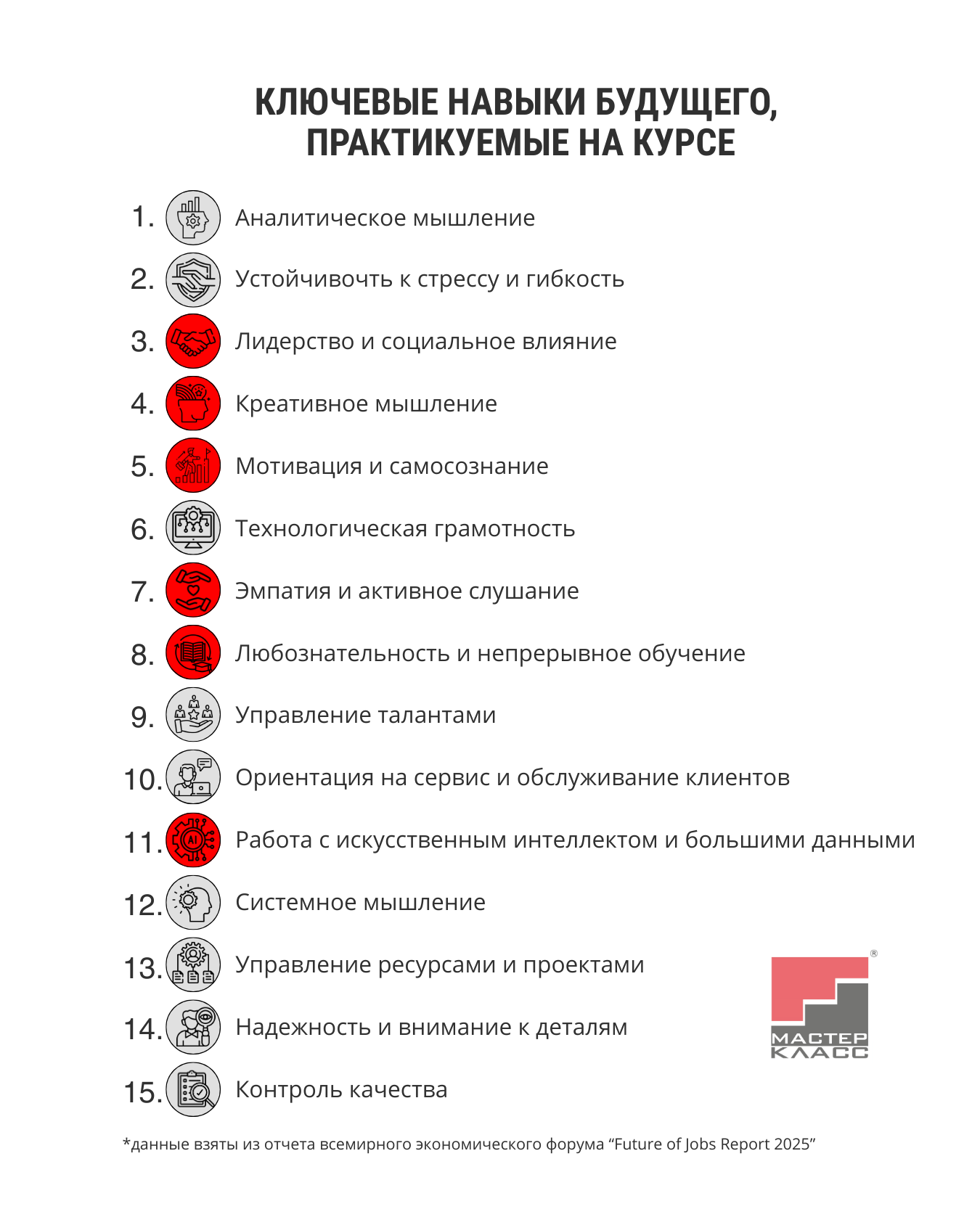 Согласно отчёту Всемирного экономического форума, 7 из 15 ключевых навыков будущего — это навыки социального интеллекта : эмпатия, лидерство, командная работа. То, что не заменит ни один искусственный интеллект.
